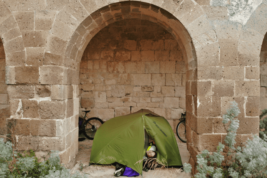 Questo viaggio è l’occasione per collaudare due new entry nella mia attrezzatura da campeggio. La tanto anelata tenda Sea to Summit Telos TR2 è la nostra casa,insieme al suo sottotelo per proteggere dai graffi l’ultimo gioiellino sfornato dall’azienda australiana e per isolarci leggermente dal terreno.