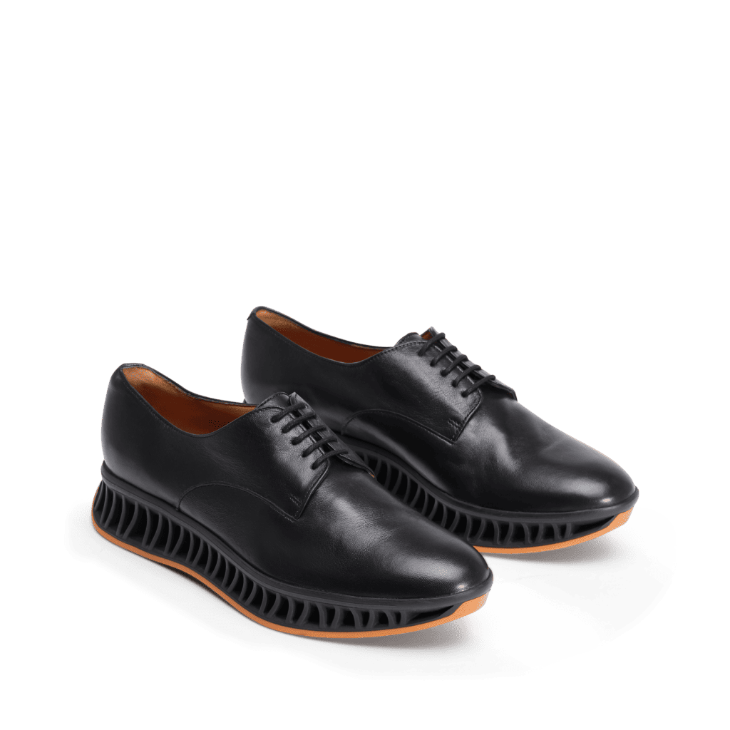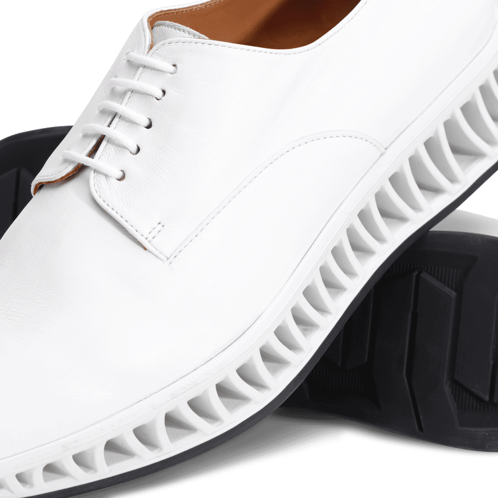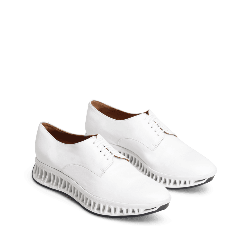 La collezione co-progettata fra Michelin e Clergerie comprende derby in pelle di agnello e in rafia naturale tessuta a mano.