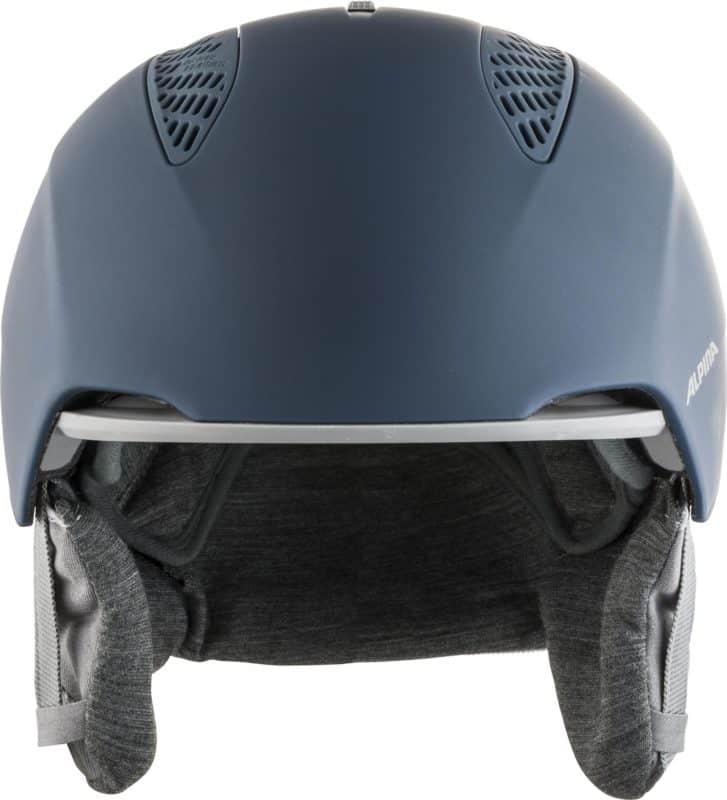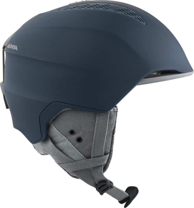 Alpina Grand Lavalan casco da sci all’apparenza molto bello, il suo colore ink-grey matt lo distingue per la tonalità insolita e molto elegante che contrasta molto bene con i toni grigio chiari presenti nell'imbottitura e nelle orecchie morbide, la parte frontale è anch'essa grigio chiaro ed è leggermente rialzata e pare quasi formare una visiera. Al tatto la sua finitura opaca da la sensazione di avere tra le mani un casco di ottima fattura, nella parte superiore ai lati sono presenti due prese d'aria regolabili manualmente tramite una levetta di plastica, l'imbottitura interna è di colore grigio chiaro e sorprende per la notevole morbidezza; la consistenza è data dalla tecnologia Lavalan: morbida fodera fatta in lana di pecora che garantisce un'eccezionale isolamento termico.