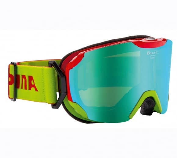 Maschera Alpina Pheos S Doubleflex Multimirror. Colore verde e rossa. Maschera di medie dimensioni, non eccessivamente larga ma molto fasciante. Lente montata quasi tutta esternamente al corpo maschera, con degli appositi alloggi, facile da sgangiare e anche da reinserire. L'elastico è agganciato al corpo maschera con delle apposite "chele" che ruotano in modo che la maschera possa adattarsi perfettamente al casco (o al cappello) e al viso dell'utente. Indossata a secco da l'idea di essere molto comoda e funzionale; la lente Multimirror sembra non essere nè troppo chiara nè troppo scura ma, anzi, molto luminosa. La gomma piuma posizionata al suo interno sembra essere non eccessiva e indossandola da subito la sensazione di comfort e comodità. Non resta che portarla sul campo. (Francesca Toti)
