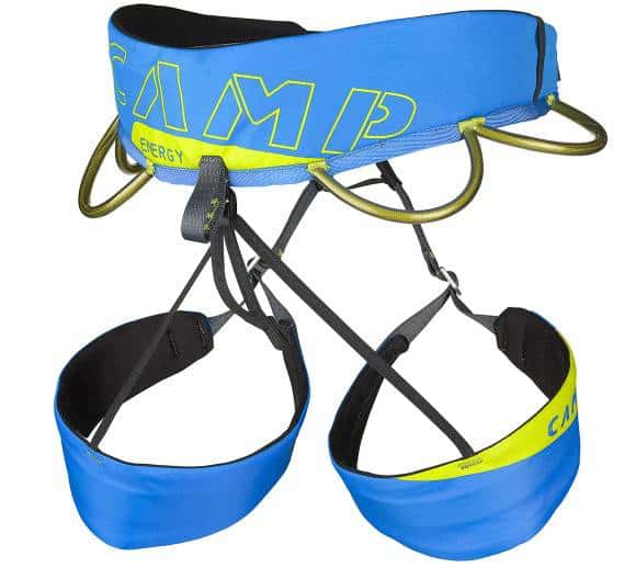 La nuova Camp Energy è un'imbracatura leggerao e confortevole in grado di soddisfare le esigenze del più ampio range di utilizzatori, dai principianti agli arrampicatori più esperti. Polivalente, adatta per l'arrampicata sportiva e per le vie in montagna, è curata in ogni dettaglio con l'impiego di materiali di prima qualità. Il nuovo interno termoformato e la notevole larghezza di cintura e cosciali garantiscono comodità e sostegno durante le sospensioni e le calate in doppia. I cosciali con fibbia scorrevole, ad ampiezza variabile ma non completamente apribili, uniscono l'assoluta sicurezza della costruzione fissa con la versatilità della costruzione regolabile. I 4 portamateriali in fettuccia con tubetto di rivestimento consentono un facile accesso a tutto l'equipaggiamento.c