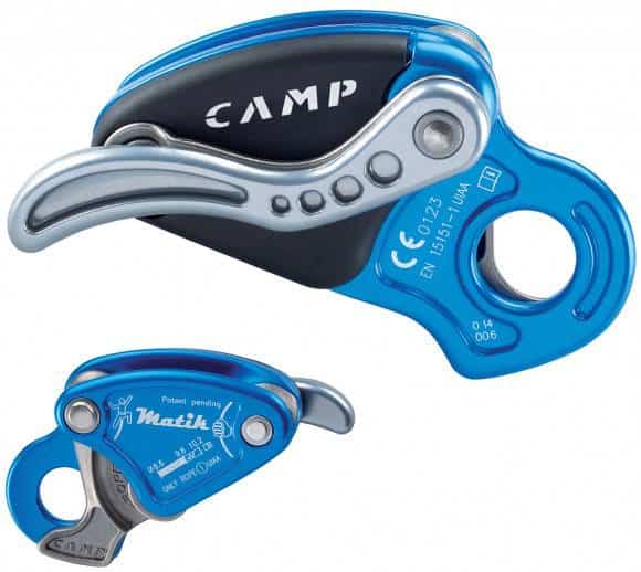 Il Matik è la rivoluzionaria novità C.A.M.P. nel settore degli assicuratori-discensori a frenata assistita per l'arrampicata sportiva. Disegnato per corde intere dinamiche da 8.6 a 10.2 mm di diametro, con cui garantisce un'eccezionale fluidità, si distingue dagli altri analoghi dispositivi per la minore forza d'arresto e la maggiore dinamicità dell'assicurazione. Questo grazie all'esclusivo sistema di frenaggio a pattino, che interviene con modalità diverse rispetto alle tradizionali camme eccentriche. Un'altra peculiarità del Matik è l'inedito controllo della discesa, resa estremamente sicura dal sistema antipanico di emergenza che si attiva in caso di azionamento accidentale o incontrollato della leva di sblocco. Il meccanismo interviene quando la leva viene aperta troppo o troppo velocemente, arrestando subito lo scorrimento della corda. Il sistema fa davvero la differenza nel caso di discese nel vuoto o calate in moulinette senza rinvii intermedi, soprattutto con corde sottili. L'assenza di flange mobili impedisce l'utilizzo del Matik aperto: se la camma non è in posizione, la sua estremità posteriore chiude il foro d'attacco e non consente l'inserimento del moschettone.