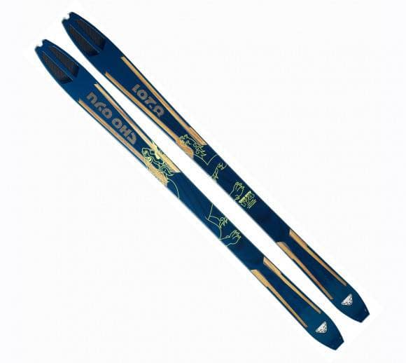 Gli sci Dynafit Cho Oyu hanno una linea molto particolare, unica nel loro genere, possono piacere o no senza vie di mezzo. La punta ricorda la tipica forma delle ciabatte marocchine, ha due inserti a vista in carbonio e il puntale è in metallo con una insenatura per l'aggancio delle pelli. La coda è presidiata dal leopardo delle nevi: come la punta, si stringe tantissimo sul finale, ed è anch'essa in metallo con una lieve rientranza per il laccio finale delle pelli. Rocker in punta per circa 38 cm. (sulla soletta di uno sci è indicato l'inizio del rocker con la scritta "scoop") e in coda per circa 13 cm. Bello il colore: blu petrolio con inserti a vista in legno naturale, un dragone stilizzato ricorda la collocazione cinese del monte che ha prestato il nome allo sci. La flessione manuale dello sci evidenzia un arco quasi perfetto da punta a coda. Lo sci è molto piatto, quasi nulla la centina nella costruzione. Il peso è ottimo per uno sci di queste dimensioni: 1080 gr. La soletta è bianco/nera e ripresenta il dragone e il leopardo come sulla serigrafia superiore. Il raggio indicato è triplo: 16 - 11,5 - 15, siamo curiosi di testarlo per capirne le differenze.