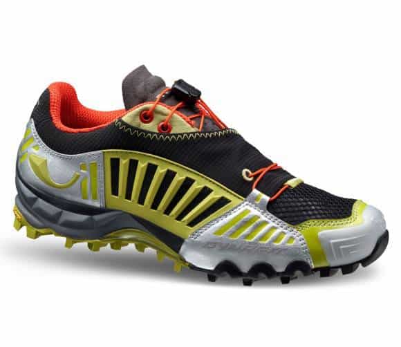 Appena si prende in mano questa scarpa è chiaro che il suo punto forte è la leggerezza. La Feline ha un ottimo rinforzo sotto il tallone per garantire una buona ammortizzazione ed è rinforzata sia in punta che sul tallone. La suola “multipad midsole” è dotata di una tassellatura particolare come “tacchetti” simili a quelli di scarpette da calcio, che favoriscono stabilità in appoggio. Vi sono anche delle scanalature nella suola, soprattutto nella parte centrale, che permettono l’adattabilità della scarpa ad ogni tipo di superficie, anche quelle più irregolari. L'altro particolare che cattura subito l'attenzione sono i lacci, con tecnologia Speed Lacing e protetti da una tasca detta “ghettina” che nasconde il laccio una volta tirato. (Elena Lafranconi)