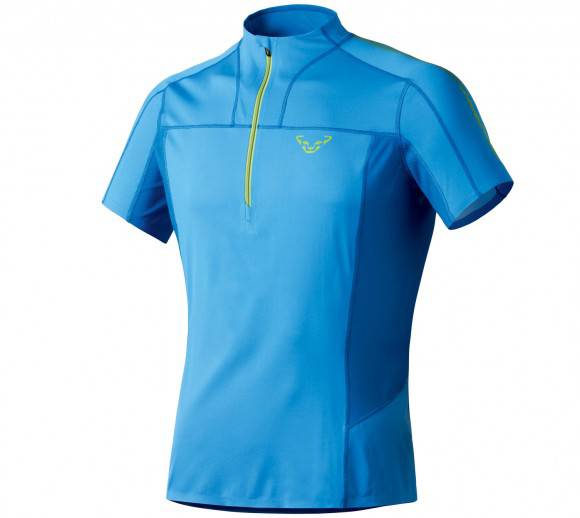 Il test della maglia Dynafit React Dry inzia con la fase di indossaggio: la maglia dona immediate sensazioni di leggerezza e freschezza, con piacevole morbidezza a contatto con la pelle. Nelle prime fasi di corsa, con vento contrario fresco, il capo ha mantenuto il corpo alla giusta temperatura, sensazione confermata anche quando l'azione si è fatta più intensa e in assenza di vento, con oltre 25°C. Dopo oltre 45 minuti di corsa, lungo sterrati e tratti d'asfalto, con sudorazione elevata, questa maglia da running ha risposto in modo efficace, mostrando ottime qualità sui piani della traspirabilità e della termoregolazione. Superata l'ora di corsa, il piacere di muoversi con un capo leggero e sempre fresco, permette di poter continuare l'azione nelle condizioni migliori, senza i fastidi di un busto bagnato e di un capo appesantito indosso. Il segreto di questo lavoro meccanico efficace, che permette di portare l'umidità verso l'esterno, sta nel tessuto di costruzione Thermocool fresh e nelle ampie zone di ventilazione laterali, cui si aggiunge una zip frontale che all'occorrenza può essere ampiamente aperta fino a metà petto. La tasca, ubicata nella parte laterale posteriore del capo, può contenere bandane e/o barrette energetiche; non riporvi smartphone perchè dondolano in modo fastidioso. Nessuna cucitura ha dato sensazioni di sfregamento sulla pelle. Molto apprezzabile anche il look&feel.
