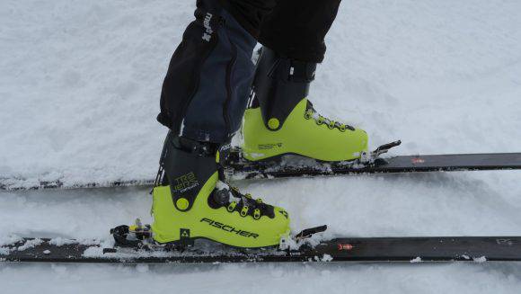 Il Fischer Travers Carbon è uno scarpone da sci alpinismo adatto a buoni sciatori e a tutti coloro che affrontano la salita con un buon passo; è uno scarpone interessante per la sua leggerezza e la rigidità. Ha una buona ghetta per evitare che la neve bagni la scarpetta, ha un sistema di chiusura a boa impreziosito da tante piccole carrucole che favoriscono il bloccaggio del piede, un sistema di chiusura del gambetto formato da una larga fascia di velcro facilmente regolabile due semplici leve per passare dalla modalità cammino alla discesa. Il gambetto in carbonio da subito trasmette la sensazione di buon bloccaggio della caviglia e, conseguentemente, di controllare lo sci con una buona precisione. Fischer Travers Carbon colpisce innanzitutto per la sua semplicità: è una scarpa essenziale che consente una transizione dalla modalità cammino alla discesa con solo due mosse: chiusura del gancio del gambetto e abbassamento della leva posteriore. Il piede viene bloccato grazie al sistema Boa integrato con 7 piccole carrucole che favoriscono lo scorrimento del cavetto, il gambetto viene chiuso con un gancio che tende una fascia di velcro alta 45mm, posteriormente c'è la leva per modificare l'assetto salita discesa, facile da usare. La suola, ha un buon carrarmato ed è rinforzata da un foglio di carbonio che rende lo scarpone più rigido. Io ho utilizzato il Fischer Travers Carbon CC in pista ma anche in ambiente, con neve fresca, dove ho seguito una traccia preesistente molto rovinata; in salita si è rivelato molto buono, sia per l'ottima escursione del gambetto, sia per la facilità di bloccaggio del piede col sistema boa, questi due pregi consentono di procedere in modo veloce, in caso di buona traccia e su pista, ma anche con sicurezza su tracce rovinate e sui traversi. La ghetta interna è abbastanza alta per impedire alla neve di entrare anche quando si deve procedere camminando su un pendio ripido innevato: classica situazione da piccozza e ramponi. In discesa lo scarpone è ben aderente e blocca bene la caviglia, l'abbinamento grimland e carbonio garantisce un ottimo compromesso tra il peso e la tenuta ma con una spesa molto più contenuta rispetto ai modelli di solo carbonio. Lo scarpone è, senza dubbio, la parte più importante dell'attrezzatura di uno sciatore, deve consentire la trasmissione dei movimenti dell'arto inferiore e del piede allo sci, ovviamente più movimenti sono intensi e rapidi più questo tipo di attrezzo deve essere preciso, rigido quanto basta ma, dovendolo indossare anche per parecchie ore, anche comodo. Il Fischer Travers Carbon risponde egregiamente a tutte queste caratteristiche.