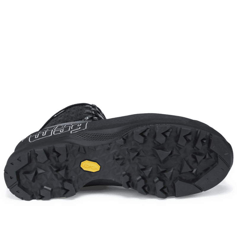 La suola è stata completata con il battistrada Vibram e il tallone rinforzato con il composto "Vibram Mont": insieme garantiscono un'eccellente trazione sulle discese. Inoltre, la climbing zone rinforzata dalla TPU nella parte anteriore della suola offre una perfetta stabilità del bordo all'alluce per passaggi precisi su roccia o metallo nelle vie ferrate.