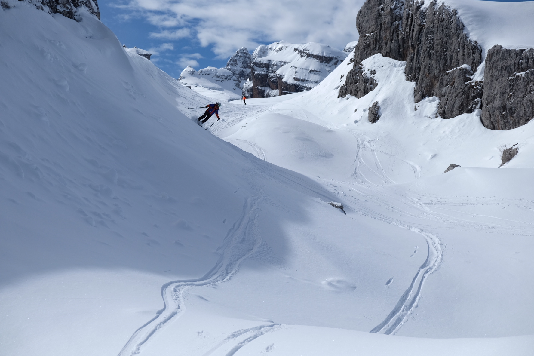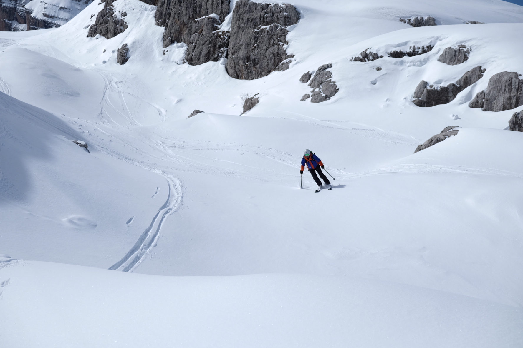 Il test dei Komperdell Big Art Fat Carbon si è svolto in presenza di condizioni atmosferiche variabili, con alternanza di cielo limpido e nuvolosità, su un fondo nevoso tipicamente primaverile, caratterizzato da tratti compatti nelle ore più fredde e superfici via via più morbide e umide con il passare della giornata. Durante il terzo giorno, una leggera nevicata ha depositato circa dieci centimetri di neve fresca, contribuendo a diversificare ulteriormente il contesto. Le prove si sono sviluppate su pendii di varia natura, comprendendo anche una simulazione completa di escursione fuoripista, sia in salita che in discesa, e su tratti di pista battuta, con l’obiettivo di analizzare il comportamento delle attrezzature in condizioni differenti e non omogenee.