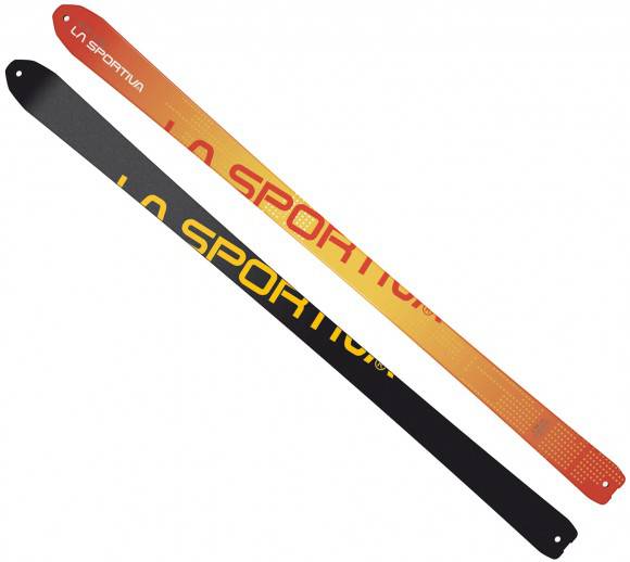Fusion Sidewall, 90% camber/10% rocker; Copertura: 0.5 mm Double Polyamide (Iso ICP8210) - laccata; Light Karuba Paulownia Wood laminato verticalmente; Lamine: acciaio 1.8 mm + gomma accoppiata |