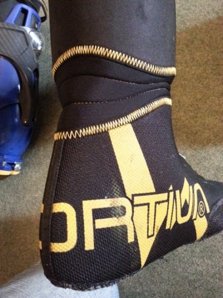 Il test del modello Sideral 2.0 de La Sportiva si è svolto durante una splendida giornata di sole sulle nevi ancora invernali della Val Senales. La suola ha un bel grip, anche su terreno accidentato o bagnato. La chiusura del gambaletto per iniziare la discesa è abbastanza semplice, ma, una volta regolata la lunghezza della fascia a velcro, richiede una preventiva compressione manuale delle plastiche per poter avvicinare il gancio dello strap alla leva superiore e di conseguenza facilitarne la chiusura. Una volta agganciato, il gambaletto si blocca automaticamente e lo scarpone è pronto per la discesa. La pressione sul piede è uniforme ma la flessione è esageratamente morbida, anche a causa della giornata calda e soleggiata, anche se a 3000 mt. di quota. Il sistema "Vertebra" tiene molto bene ma sono i fianchi del gambaletto e dello scafo ad allargarsi spanciando durante la flessione della caviglia. Il risultato è un importante cedimento in avanti; in discesa è molto evidente e l'eccessiva flessione non permette un perfetto controllo della conduzione dello sci, soprattutto in tratti con neve dura e ad alta velocità. In pista è comunque divertente, sia in corto che ampio raggio, con l'accortezza di ricordarsi dell'estrema morbidezza del gambaletto. In salita con le pelli il comportamente è ottimo. Molto comodo ma allo stesso tempo compatto e stabile. Il gancio inferiore mantiene il piede bloccato ed evita che il tallone si alzi creando fastidiosi sfregamenti (per creare più spazio sulla pianta del piede si può eventualmente tenere aperto il gancio stringendo al massimo la vite micrometrica). Il gancio superiore aperto sblocca il sistema Walk/Ski e permette una notevole escursione del gambaletto, soprattutto posteriormente, permettendo un passo lungo ed efficace in salita. Nessun punto dolente durante la salita di un'ora.