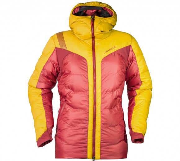 La Tara Jacket di La Sportiva è un capo che a prima vista sembra molto caldo e confortevole data la sua voluminosità, i colori sono quelli classici giallo senape e blu petrolio. Se la guardiamo da vicino risulta ben studiato dal punto di vista del body mapping, sia dal punto di vista dei materiali interni ed esterni che dal punto di vista della vestibilità. Troviamo una coulisse nelle tasche per stringere la parte della schiena per renderlo più o meno sciancrato, ed una coulisse in vita per stringere i fianchi.