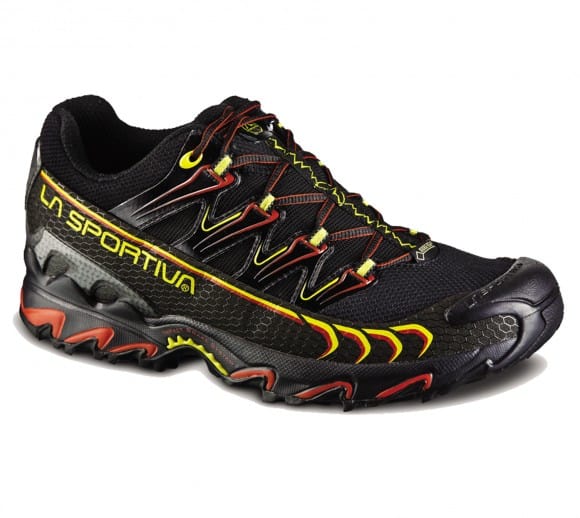 La Sportiva Ultra Raptor versione GTX, con membrana Gore-Tex Extended Comfort, rappresenta una variante del modello Ultra Raptor. La calzatura trasmette solidità, e il primo pensiero, tenendola in mano e osservandola, è che sia un prodotto curato nei particolari e adatto ad un utilizzo intenso, per lunghi periodi. Lungo la tomaia si nota l'impiego di materiali resistenti, antiabrasione, che sembrano studiati ad hoc per corerre attraverso fitti sottoboschi, pietraie e terreni particolarmente accidentati. Diversi rinforzi sono presenti un po' ovunque, a partire dal tallone e calcagno, proseguendo sui lati della scarpa fino alla punta. Una volta calzata, la Ultra Raptor mostra volumi compatti e avvolge con precisione il piede. Stringendo i lacci il sistema di allacciatura, integrato nella tomaia, distribuisce uniformemente la tensione, andando a serrare in modo sicuro e preciso il piede. La suola FriXion XF si presenta costellata di chiodi e tasselli, orientati in modo eterogeneo, al fine di garantire stabilità e grip su diversi terreni, sia in salita che in discesa. Al centro una zona di assorbimento degli impatti denominata Impact Brake System. I primi passi trasmettono una buona ammortizzazione distribuita sul tallone e sull'avampiede, ma senza eccessi, come ci si aspetta da una scarpa sviluppata per gare trail e allenamenti prolungati. Il piede percepisce calore e avvolgimento, perchè la membraa Gore-Tex, oltre a conferire impermeabilità associata a traspirabilità, tende a mantenere la temperatura corporea: per questo motivo potremo utilizzare questa calzatura durante tutto l'anno, sia in ambiente invernale, con terreni freddi e umidi, sia nel corso della primavera-estate, soprattutto alle medie-alte quote, con rugiada e clima fresco.