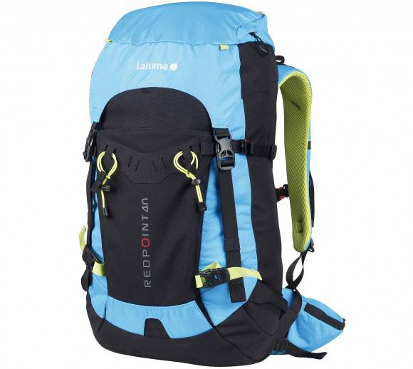 asca porta ramponi di facile accesso sul lato esterno – cinghie di compressione e porta sci – 2 porta picozza/porta bastoncini – rete stretch removibile porta casco ripiegabile all’interno del cappuccio |