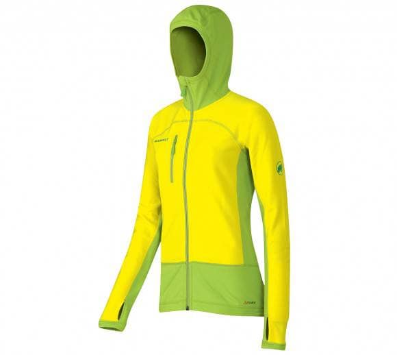 Mammut Acongagua Hoody giacca alpinismo, un midlayer in Polartec® Power Stretch® Pro 13100 (50% polyester, 40% polyamide, 10% elastane), offre numerosi vantaggi: è bielastico, con superficie resistente al vento e alle abrasioni e interno soffice. Essendo in grado di trasferire efficacemente l’umidità all’esterno, garatisce un’asciugatura rapida e quindi la pelle asciutta e calda.