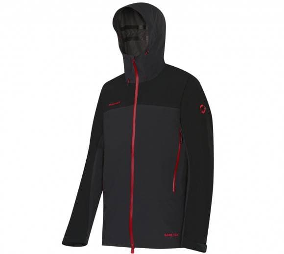 Mammut Convey. Leggera e poco ingombrante questa giacca in GORE-TEX® 2.5 strati (28.000 mm colonne d’acqua) è perfetta per fare escursioni e al 100% protettiva contro le intemperie. Ha ampie tasche laterali e un cappuccio regolabile in tre punti e può essere racchiuso utilizzando un piccolo fissaggio. Zip principale bidirezionale impermeabile, due tasche frontali termonastrate, zip sotto le ascelle per la ventilazione. Maniche preformate con velcro sui polsi, protezione del mento e vestibilità regolare.