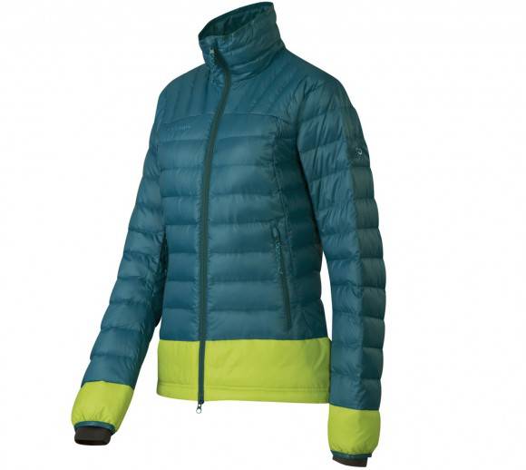 La giacca Mammut Kira IS si presenta immediatamente come un capo che ispira calore. Le forme rotondeggianti delle camere di contenimento e fissaggio dell'imbottitura PrimaLoft® Silver Downblend, un mix di piuma d'oca e polyester, suggeriscono morbidezza e comfort. Il taglio sciancrato rende il tutto snello e molto piacevole.