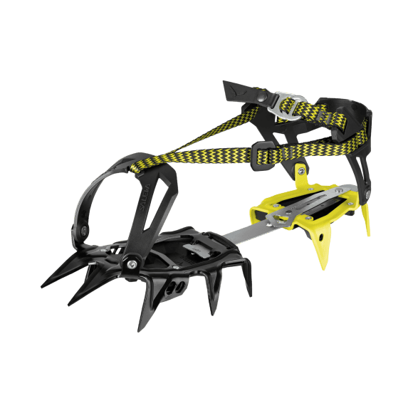 Infine, Salewa ha risolto l’annosa questione della eccedenza delle cinghie sui modelli semiautomatici e universali. Per ragioni di sicurezza molti appassionati le tagliano nella lunghezza necessaria per gli scarponi da alpinismo, trovandosi poi nella impossibilità di utilizzarle con quelli da sci alpinismo. Oppure le devono lasciare lunghe se fanno entrambe le attività coi medesimi ramponi, o quando usano materiale a noleggio. Il nuovo sistema Salewa è semplice e funzionale: le cinghie si regolano ma non sporgono più garantendo sicurezza e flessibilità di utilizzo.