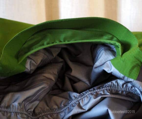 Il cappuccio alloggia facilmente il casco al suo interno, la regolazione posteriore è molto pratica e la soluzione della doppia visiera (la più esterna semirigida, quella interna più morbida), consente di sostenere a dovere la parte frontale del cappuccio, lasciando libero del tutto il campo visivo.