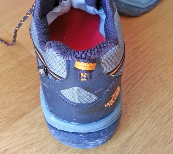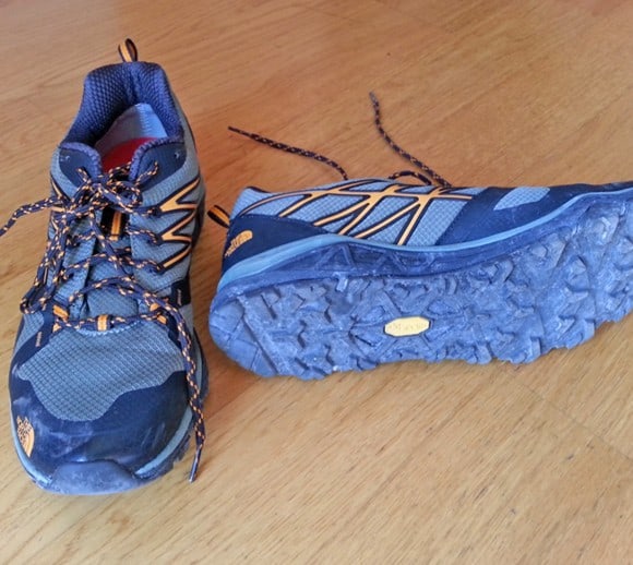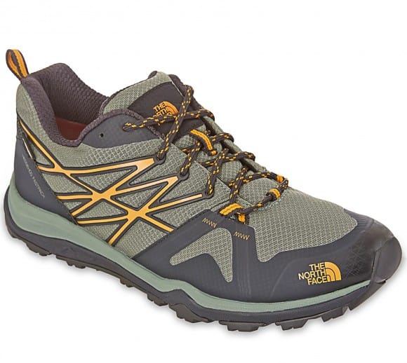 La scarpa The North Face Hedgehog Fastpack potrebbe sembrare a prima vista una normale scarpa da ginnastica, se non fosse per il marchio, tipicamente dedicato alla montagna. Leggerissima e malleabile, sia in flessione che in torsione, nasconde la sua anima outdoor nella parte inferiore. La suola è in Vibram, piatta e senza tacco, ma con evidenti inserti per favorire il grip su terreni infangati e accidentati; anteriormente la suola prosegue sulla punta per proteggerla. L'intersuola è formata da due strati diversi, sia per colore che densità, e sembra ben ammortizzata. Il tallone è la parte più rinforzata della tomaia mentre la parte anteriore è scarsamente protetta, inadatta quindi per terreni altamente sconnessi. Una leggerissima spalmatura gommata protegge infine i fianchi anteriori. I laccetti bicolori sono leggermente affusolati e passano attraverso classici fori con rinforzo in gomma, solamente quello inferiore presenta due fettucce laterali ed una centrale. La linguetta sembra ben imbottita, alla pari del collare. La membrana in Gore-Tex è ben cucita sul tallone e al centro della linguetta ma è leggermente lasca all'interno della tomaia, ciò potrebbe causare fastidiose grinze con l'utilizzo. Posteriormente è presente un laccio per facilitare la calzata ma è poco funzionale: il dito si infila a fatica, meglio stringerlo con indice e pollice. La soletta è semplice, morbida e leggermente avvolgente sulla parte posteriore. La calzata è facile e l'allacciatura veloce e pratica. L'immediata sensazione è di estrema comodità. (Stacchini Riccardo)